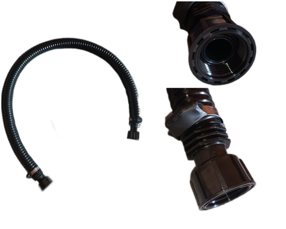 pentru a se potrivi cu furtunul spiralat, racordul de ¾ inch trebuie tăiat.